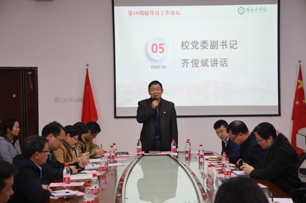 4月2日上午,beat365官网学习习近平总书记重要讲话精神,提升大学生思想政治教育质量座谈会在临桂校区大学生活动中心409举行。校党委副书记齐俊斌,宣传部、学工处、校团委、马克思主义学院、各二级学院分管学生工作负责人,全体专兼职辅导员参加会议。座谈会由学校辅导员协会思想理论教育和价值引领团队承办。