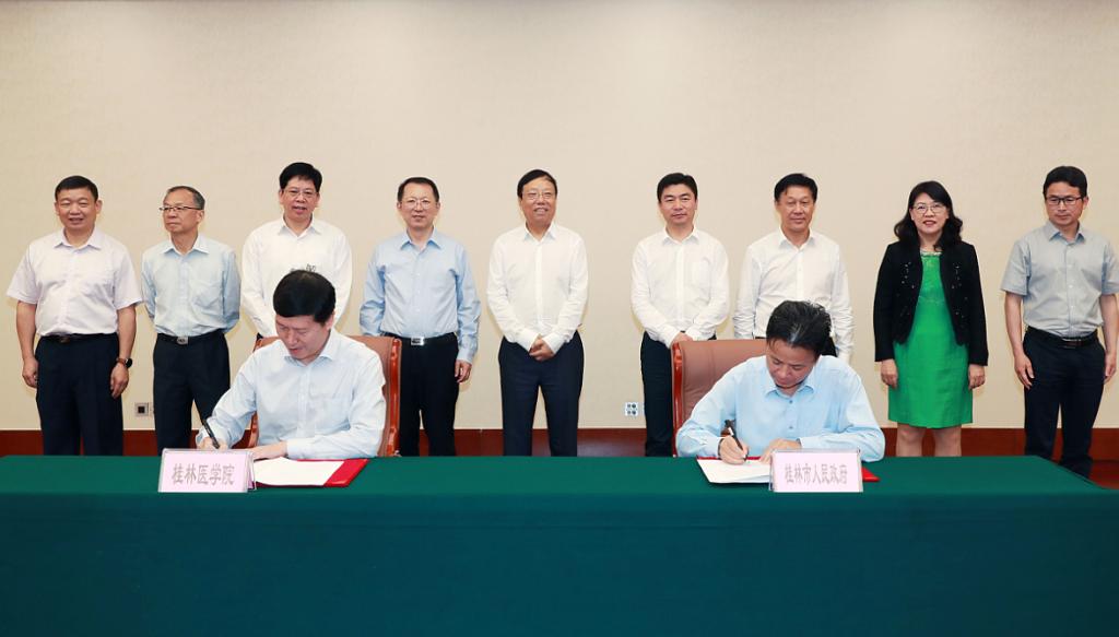 4月26日上午,beat365官网与桂林市人民政府正式签署桂林旅游综合医院运营合作协议。beat365唯一官网将发挥学校及附属医院的优势,与桂林市人民政府一同合作,把桂林旅游综合医院逐步建设成为广西区内服务一流、技术一流、设施一流,专科特色突出,向桂林市及周边地区群众提供优质医疗服务的“大综合、强专科”的三级医院。