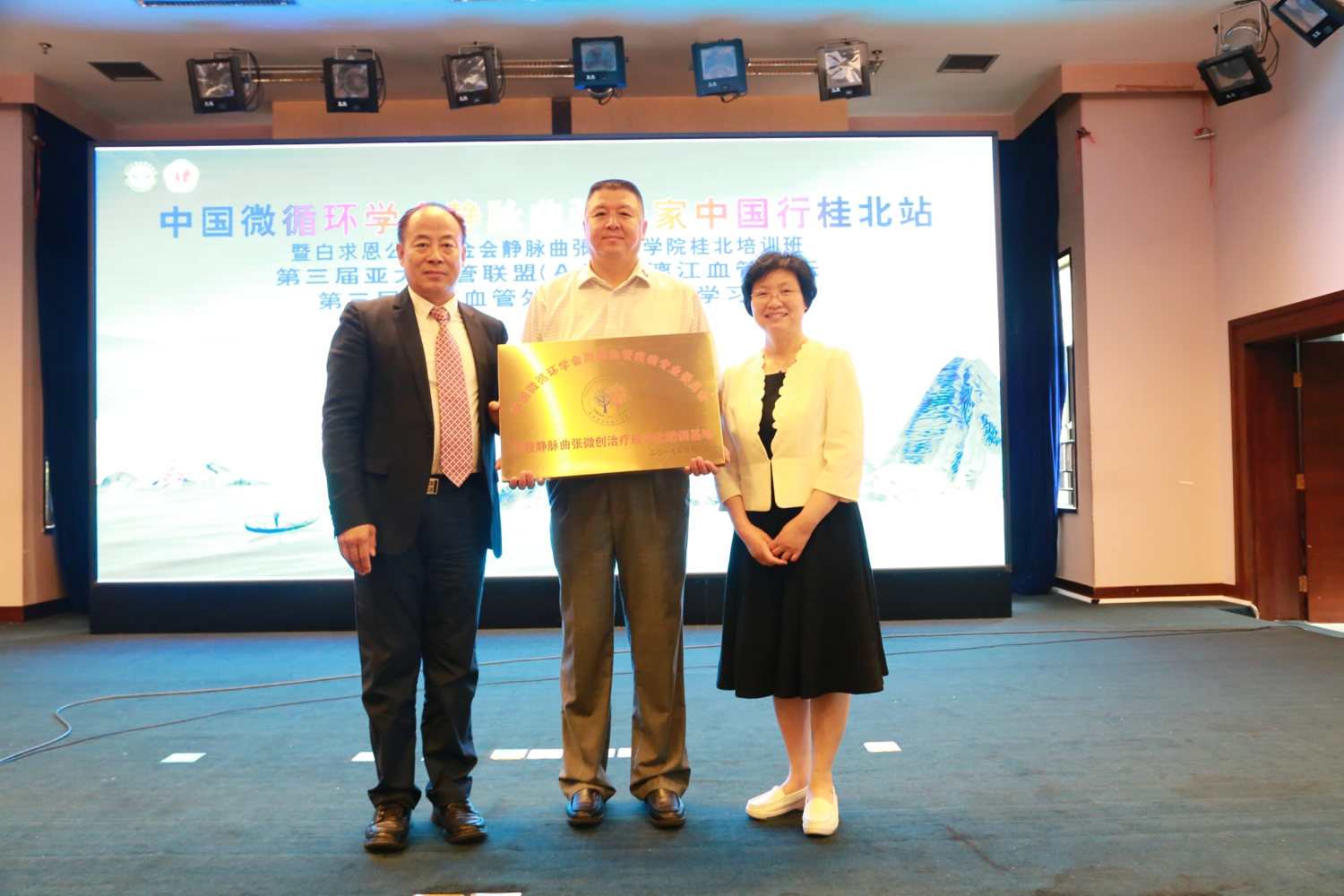 beat365唯一官网附属医院党委书记文琼仙到会祝贺,并为“下肢静脉曲张微创治疗规范化培训基地”落户beat365唯一官网附属医院进行揭牌,这是目前广西首家这样的培训基地。beat365唯一官网附属医院血管外科主任张显岚主持开幕式。