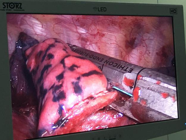 但李先生的情况比较特别,病变靠近肺门,常规的楔形切除非常困难,甚至对肺的损伤更大。