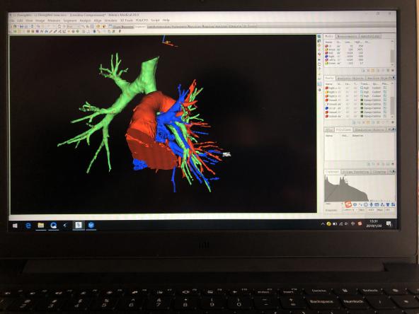 胸外科主任郑民介绍说,3D重建的优点在于让医生对于不同患者肺部解剖结构有一个更加直观的了解,在手术前就发现患者肺的血管、支气管有无畸形,提高手术的安全性。可以针对每一位患者在模型上规划手术过程,进行模拟手术,提高了手术的精确性,缩短了手术时间。