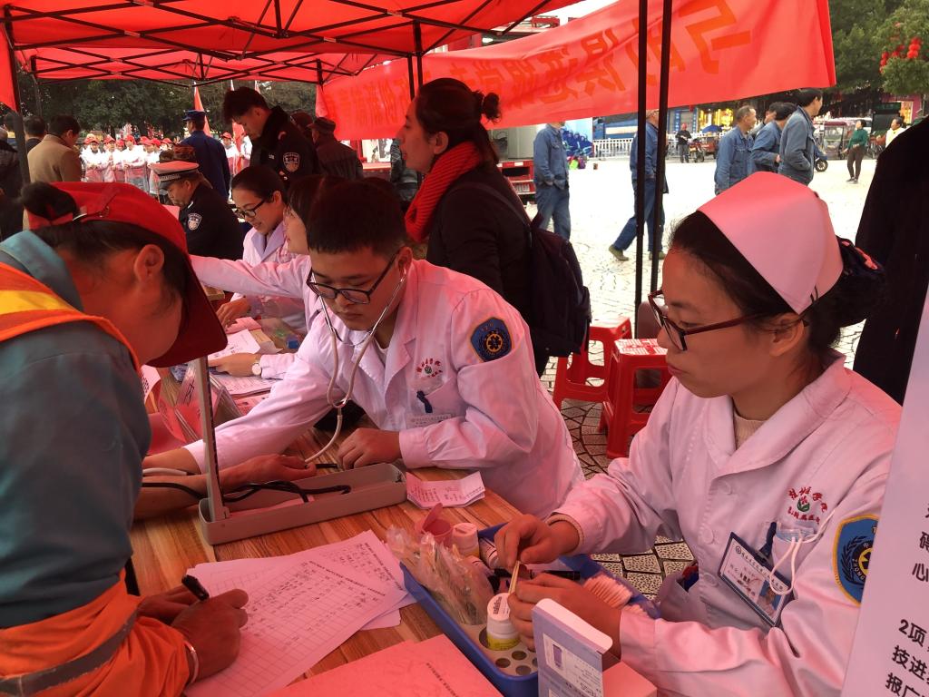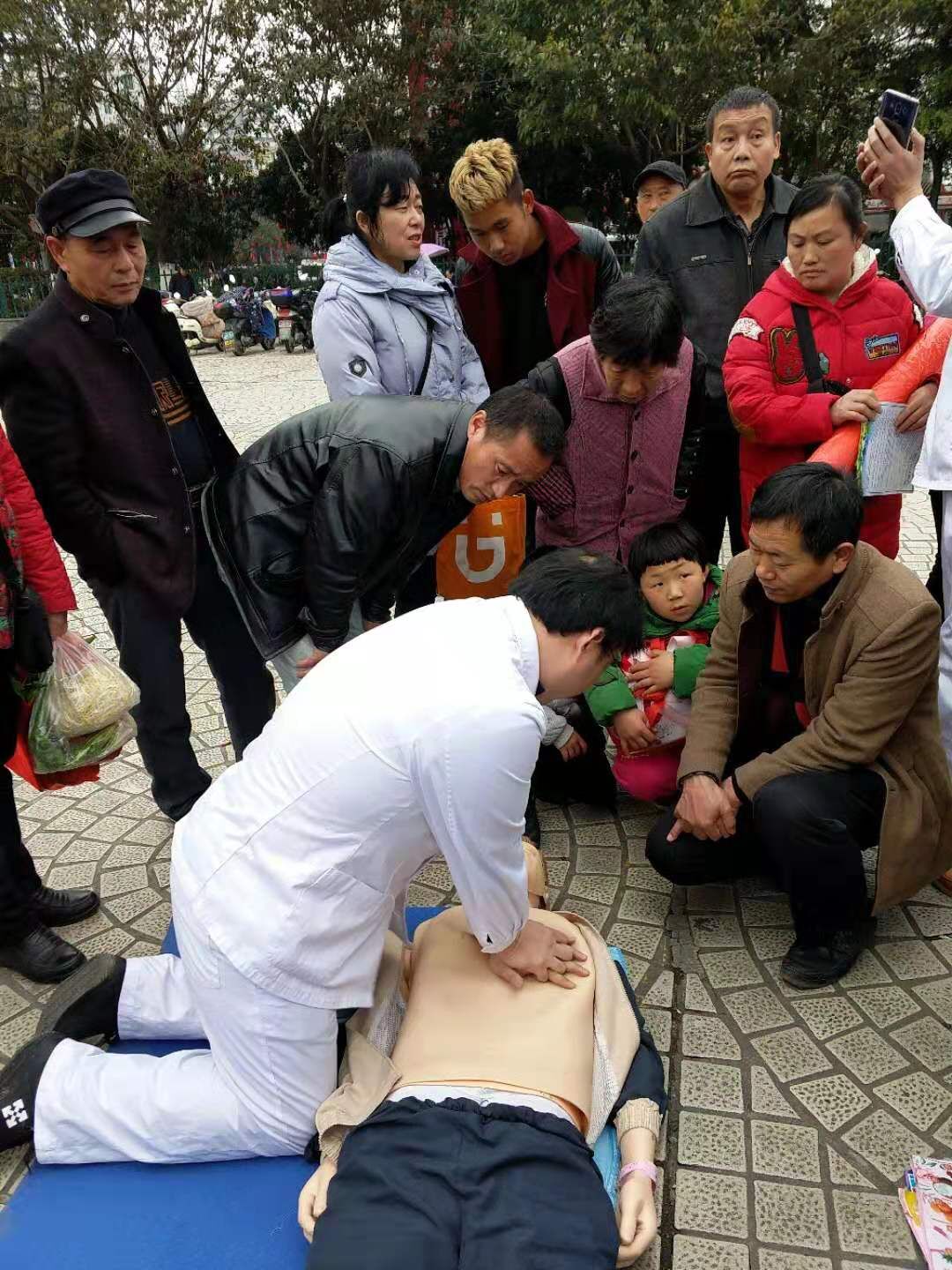 在广场的另一角,急诊科主任徐宝灵与学雷锋志愿者配合,向现场的群众演示了遇到突发心跳骤停该如何急救的技能,药学部的医师们也普及了常见病、多发病的防治及用药知识。