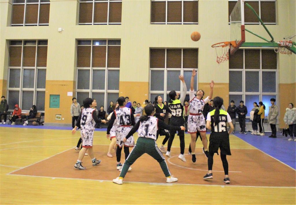 艺术团开场舞拉开了比赛的序幕,随后参赛队伍2016级药学本科班和2016级临床药学班男队, 2016级药物制剂班和2018级药学本科班女队先后登场。男队较量中,球员抢球、快攻,每个动作行云流水,干净利落,2016级临床药学班男队以9分优势取胜。女队双方实力相当,队员们防守紧密,你争我夺,紧张对决,他们打得非常顽强,咬紧比分,最后2018级药学本科班以3分优势险胜。