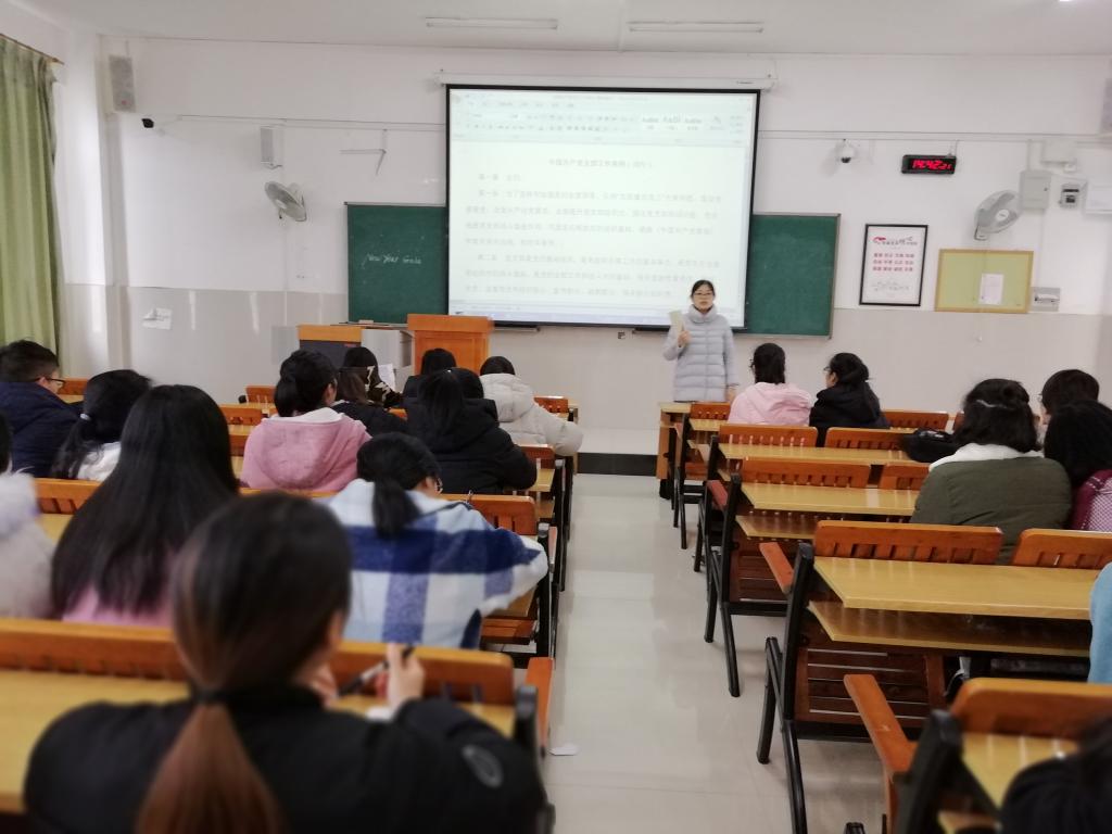2019年3月10日下午,人文与管理学院学生第一党支部于临桂教学南楼S306召开了《中国共产党支部工作条例(试行)》专题学习会议,支部全体党员参加了学习活动。
