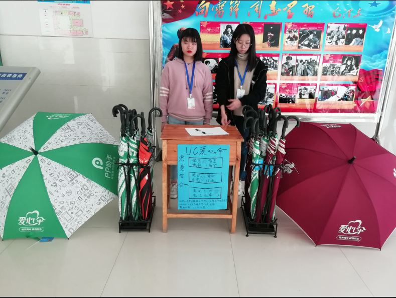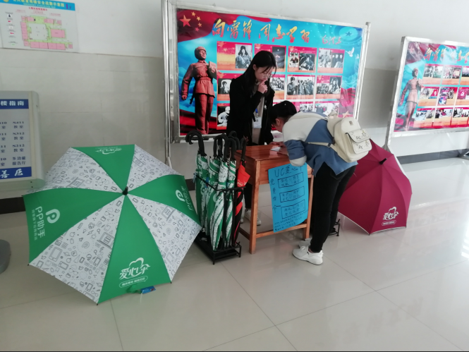 在爱心伞活动启动当天,志愿者们早早地到达了借伞登记的工作岗位,按时值班。过程中,志愿者们热情积极地向同学们介绍爱心伞活动并倡导同学们诚信借伞。有需要借伞的同学都自觉做好了相关登记。爱心伞活动的开启获得了师生们的支持和点赞,同时,老师和同学们也表达了对接下来爱心伞活动的美好期待。