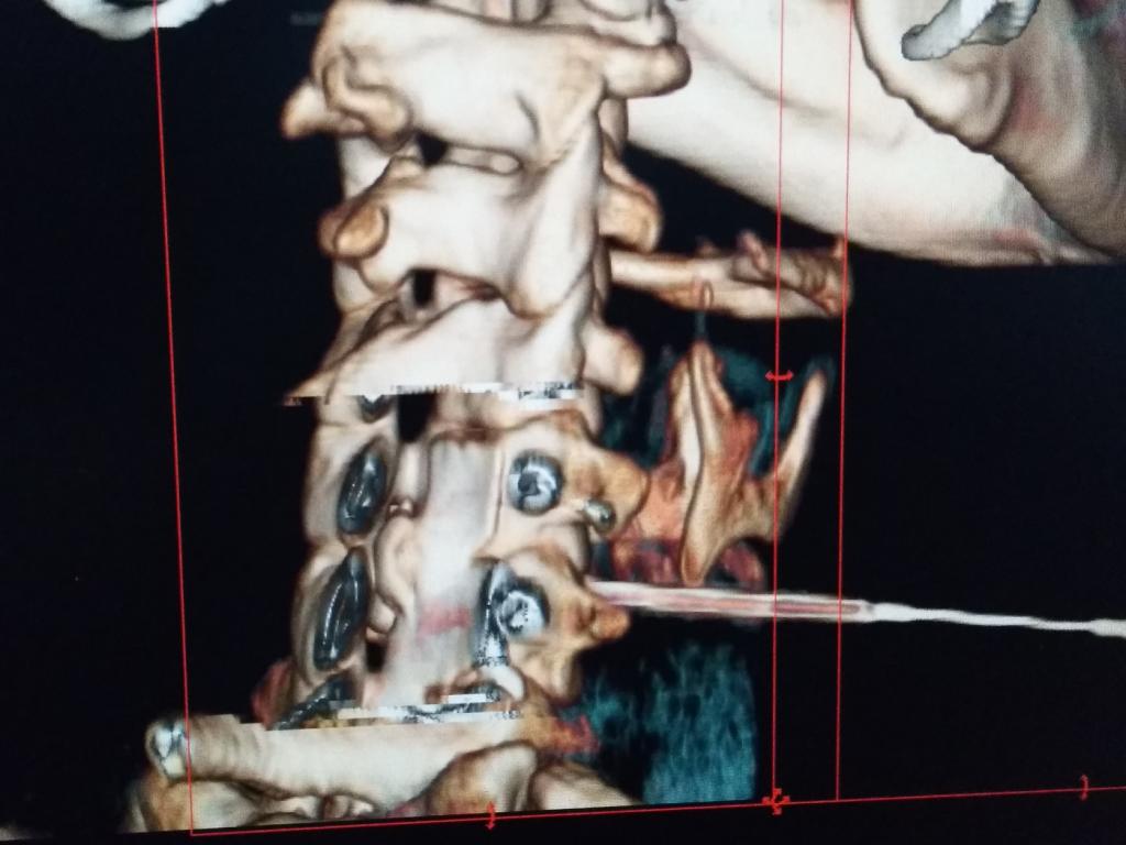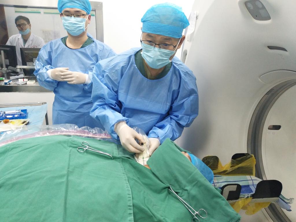 为保证治疗效果,beat365唯一官网第二附属医院疼痛团队在公主任带领下制定了详细的治疗方案,决定采用颈椎低温等离子椎间盘髓核消融术进行治疗,同时多管齐下:一方面完善影像学、实验室等检查进一步明确诊断;一方面准备手术同时对小李进行脱水、营养神经等,暂时延缓病情进一步发展,并予颈椎旁神经阻滞治疗,改善神经根周围组织循环,减轻水肿。在手术中,公主任团队利用CT测量软件计算出穿刺点和穿刺角度,用B超引导慢慢地将直径为0.5毫米的穿刺针送到突出物内,CT扫描确认针尖位置准确。置入等离子刀头(刀头不过一根针粗细),调整刀头方向,再次确认位置后开始消融手术。整个手术过程约1小时,术后,小李的肩膀和手不那么疼,特别是手指又能拿筷子了。一个月后,小李恢复得很好,肩膀和手不麻也不痛,手也有了力气。