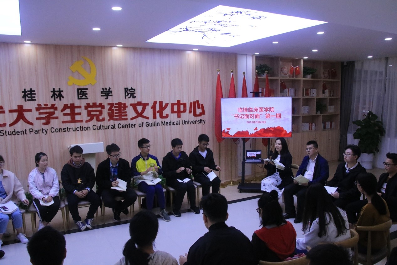 为深入贯彻落实党的思想方针和政策,加强基层党组织的建设,同时推进学校“三全育人”工作,进一步了解学生需求,临桂临床医学院于2019年3月20日在临桂校区党建活动中心开展临桂临床医学院“书记面对面”交流会,临桂临床医学院党委副书记刘梦青出席活动,学工办辅导员、学生党员、入党积极分子及班级学生干部代表参加此次活动。