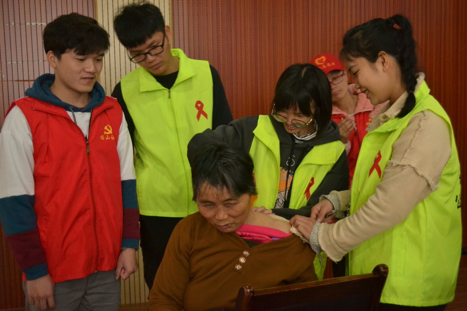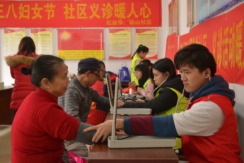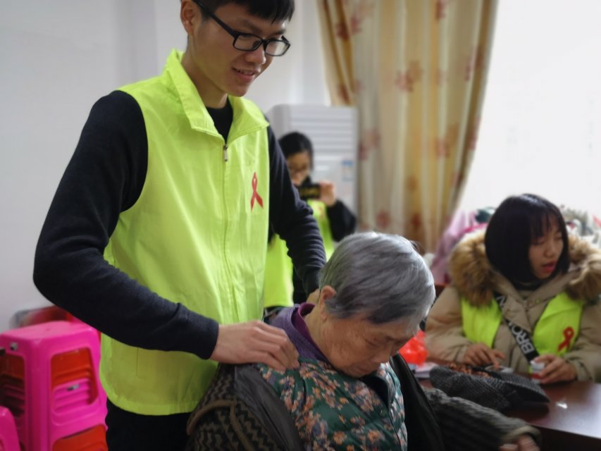 义诊活动一开始,前来咨询的社区居民络绎不绝。红丝带志愿者协会的志愿者们热情地为前来咨询的社区居民们进行常规的血压及血糖测量,并对血压,血糖偏高,高血压,和高血糖的社区居民提出许多生活习惯与饮食等方面的建议。志愿者们还向社区居民发放伤寒、心血管疾病、艾滋病等常见疾病的预防知识宣传手册,并向他们讲解许多有关健康的小知识。同时,为增强社区居民在健康养生方面的意识,义诊现场志愿者们还为社区居民提供艾灸,按摩等养生保健服务,并热情地与社区居民交流、讲解许多养生秘籍,让榕山社区居民能够足不出户就体验到健康养生疗法。居民们对志愿者们的志愿服务称赞不已,义诊活动现场充满暖意温情。