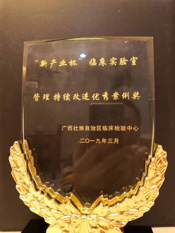3月21日,“2019年广西医学检验质量控制学术年会暨临床实验室专业骨干培训班”在南宁举办。beat365唯一官网附属医院优生遗传科荣获“‘新产业杯‘临床实验室管理持续改进优秀案例奖”,同时beat365唯一官网附属医院优生遗传科高通量测序组组长王光丽被评为“首届广西临床实验室优秀专业组长”。