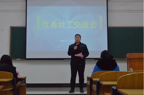 2019年3月19日是第十三个国际社工日,为进一步提高专业学生及社会对社工工作的认知、增强学生的专业认同感,2019年3月23日,人文与管理学院惠馨社会工作协会在临桂校区教学北楼104教室举行了优秀社工交流会与社工专业人才培养座谈会,本次活动得到桂林市民政局和桂林市社会工作协会的大力支持,也是桂林市社会工作主题宣传系列活动之一。本次活动荣幸邀请到桂林市福利院社工部主任刘群老师到场分享社工实务经验,参与本次活动的有人文与管理学院郭振友副院长、人文与管理学院团委林丹副书记、社会工作教研室赵阳博士、银新倩老师、陈露露老师、刘万坤老师以及全体社会工作专业学生。