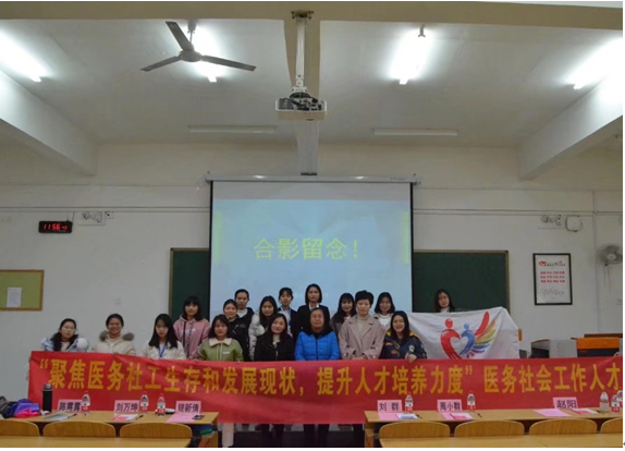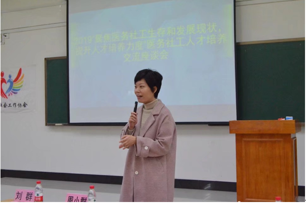 交流会结束后,协会组织开展了“聚焦医务社工生存和发展现状,提升人才培养力度”医务社会工作人才培养交流座谈会。座谈会开始,主讲人赵阳博士首先传达了医务社会工作人才座谈会精神。赵阳老师的讲话中提到医务社工生存和发展现状,并就医务社工人才的培养给予建设性的意见;同时也指出医务社会工作人才培养工作中存在的一些亟待解决的问题,现有人才培养的数量和质量还不能满足或是达不到社会医疗发展的需要,高校大学生应更加注重自身的培养。最后赵阳老师就各位社工专业同学道出在学习中遇到的问题或者产生的新思想,并对其进行解答与指导。