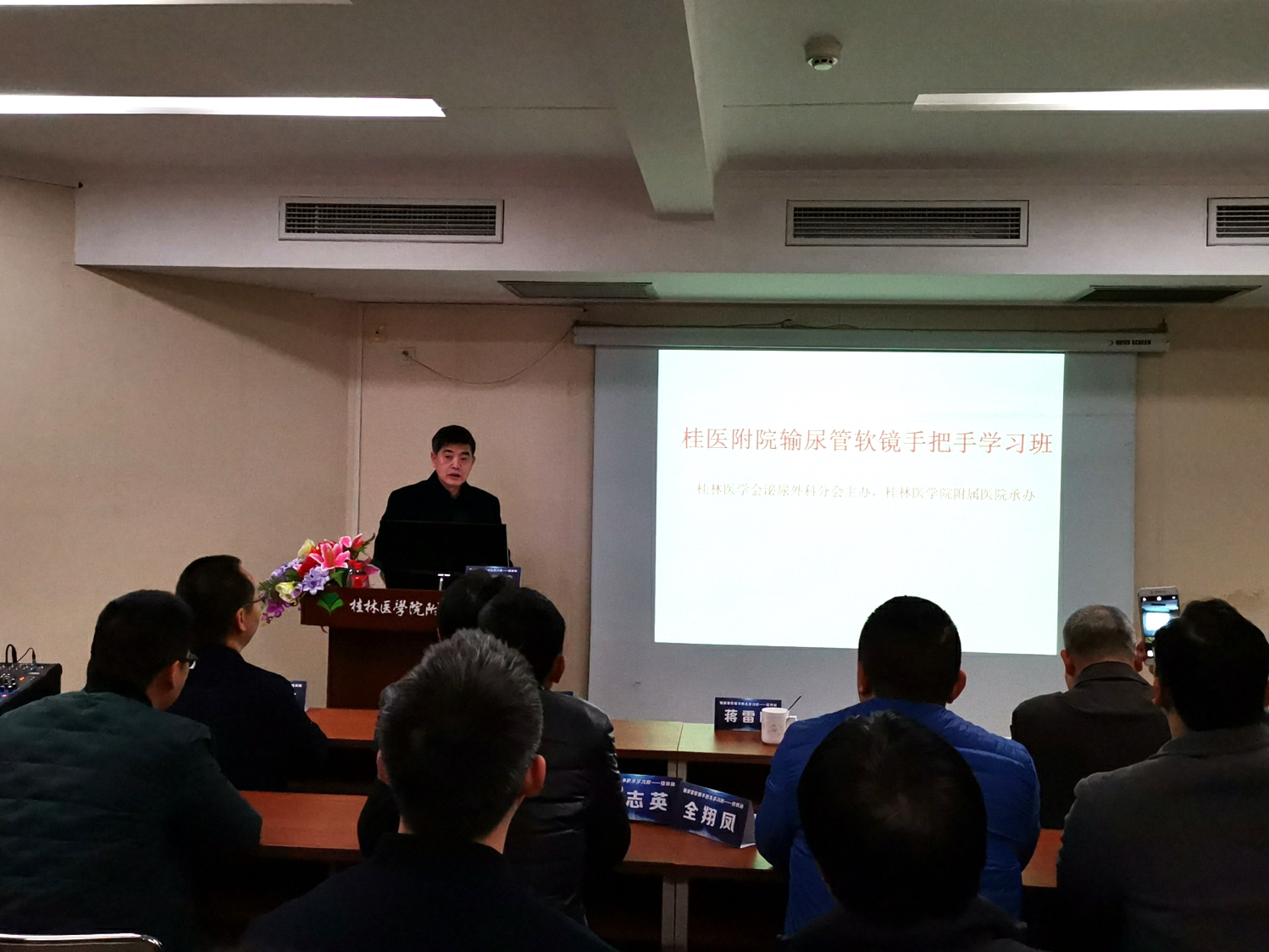 近日,由桂林医学会泌尿外科分会主办、beat365唯一官网附属医院承办的输尿管软镜手术手把手学习班顺利召开。桂林医学会泌尿外科分会主任委员、beat365唯一官网附属医院泌尿外科主任蒋雷鸣教授致开幕词,并对会议主旨进行了诠释,对今年泌尿外科分会的发展进行了规划。参加本次会议的学员有桂林市6家三甲医院泌尿外科的主任及11个县业务骨干。