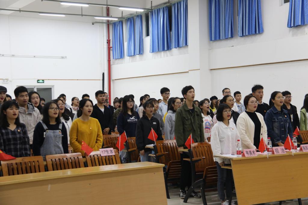 活动在全体团员齐唱共青团团歌,重温入团誓词中开始,各团支部献上精彩节目:手语舞《国家》、朗诵《祖国万岁》、《爱国诗朗诵》、《我们的中国梦》展现了我院同学们对祖国的无限热爱;歌曲《初心》颂扬了“不忘初心,牢记使命”的精神;舞蹈《快乐山歌》生动演绎了人们对美好生活的向往……活动过程穿插知识问答,同学们积极参与,共同温习牢记党团知识。表演环节结束后,同学们观看了国庆献礼70周年的视频,回望七十年祖国披荆斩棘、风雨兼程的发展之路。最后,活动在同学们嘹亮的《我和我的祖国》歌声中落下帷幕。