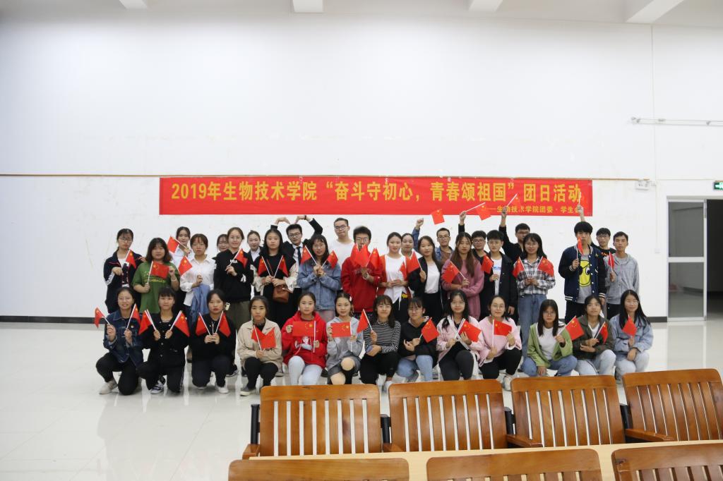 为进一步增强历史责任感和使命感,深入推进"不忘初心、牢记使命"主题教育活动,11月12日晚,生物技术学院在大学生活动中心二楼报告厅举办“奋斗守初心,青春颂祖国”主题团日活动。