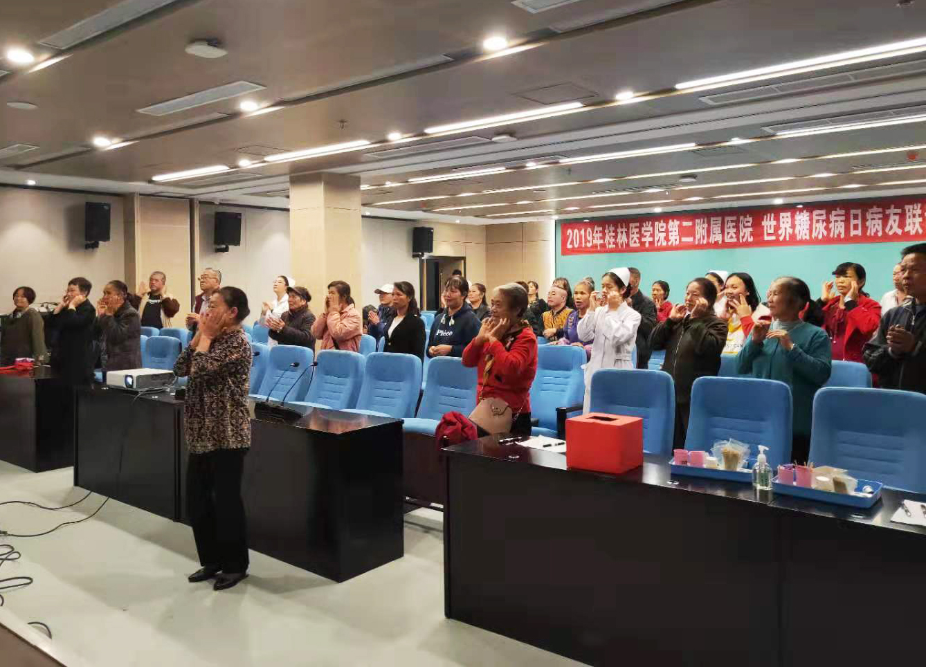 为迎接即将到来的“联合国糖尿病日”,进一步推进糖尿病的防治工作,11月13日上午,beat365唯一官网第二附属医院内分泌科在PET-CT楼5楼成功地举办了“防控糖尿病,保护你的家庭”主题宣传活动,此次活动吸引了诸多患者及其家属,会场座无虚席,气氛活跃。