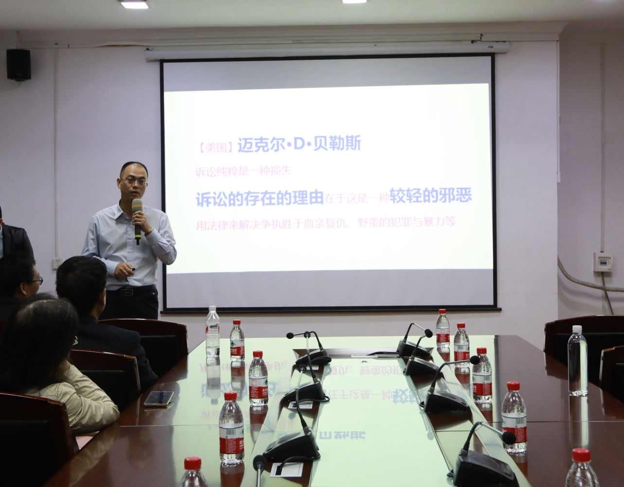 会上,广西卫生法学会自律与维权委员会副主任谢青松教授作了题为《医疗纠纷合意解决机制》的主题讲座。