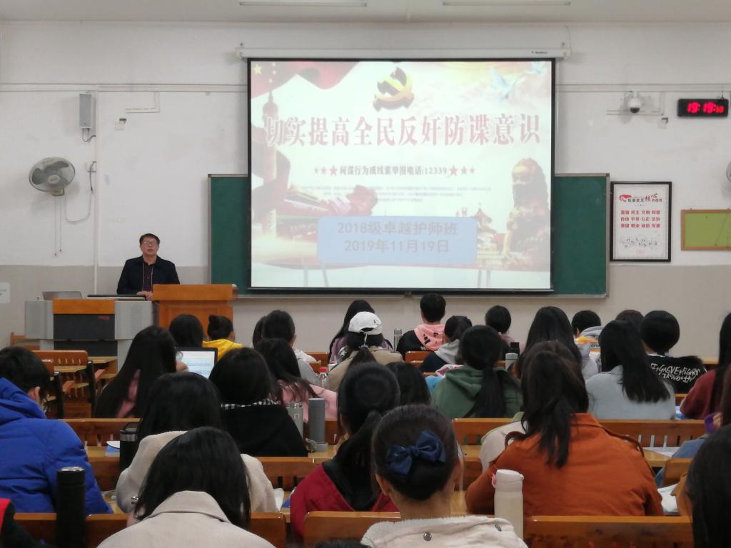 为了全面普及同学们反奸防谍国家安全知识,提高同学们国家安全防范意识与能力,引导同学们自觉树立履行维护国家安全的责任及义务。11月19日,在临桂校区,18卓护班举行以“学习反奸防谍国家安全教育”主题班会,辅导员唐小平老师及18卓护班全体成员参加。