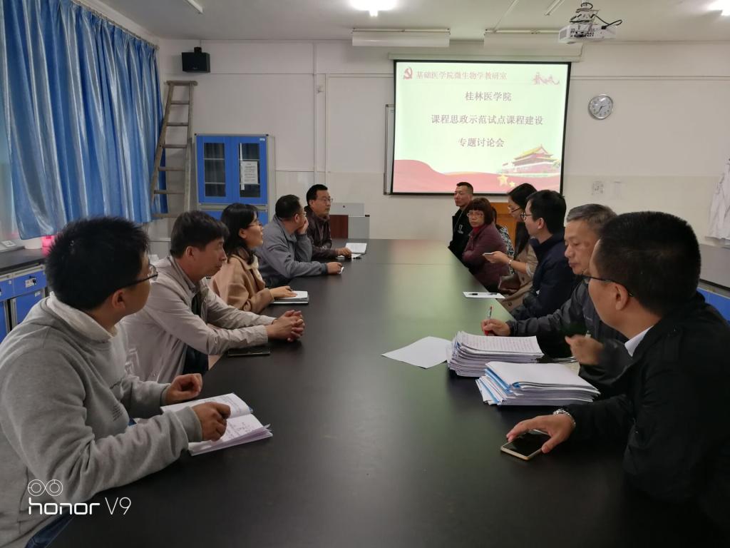 大家结合近年来专业课程开展实践教学的实际情况,联系《中共中央国务院关于加强和改进新形势下高校思想政治工作的意见》、《高校思想政治工作质量提升工程实施纲要》和自治区教育厅《在全区高等学校本科教育工作会议上的讲话》等文件要求,关于专业课程实践教学的具体要求以及时代特点、学生特点,认为思政课程结合专业课程建设的实践教学对于学生健康成长、为担当民族复兴的时代新人意义重大;由于课程思政教学刚刚融合起步,更要花大气力认真谋划,精心组织,严格实施。经过讨论,大家形成一致意见,采取点面结合的方式开展课堂实践。点上,在《医学微生物学》专业上课程试行“思政素材”进课堂、“反思精进”找差距;面上,在所有其他教学班级融进“思政课程”大融合。