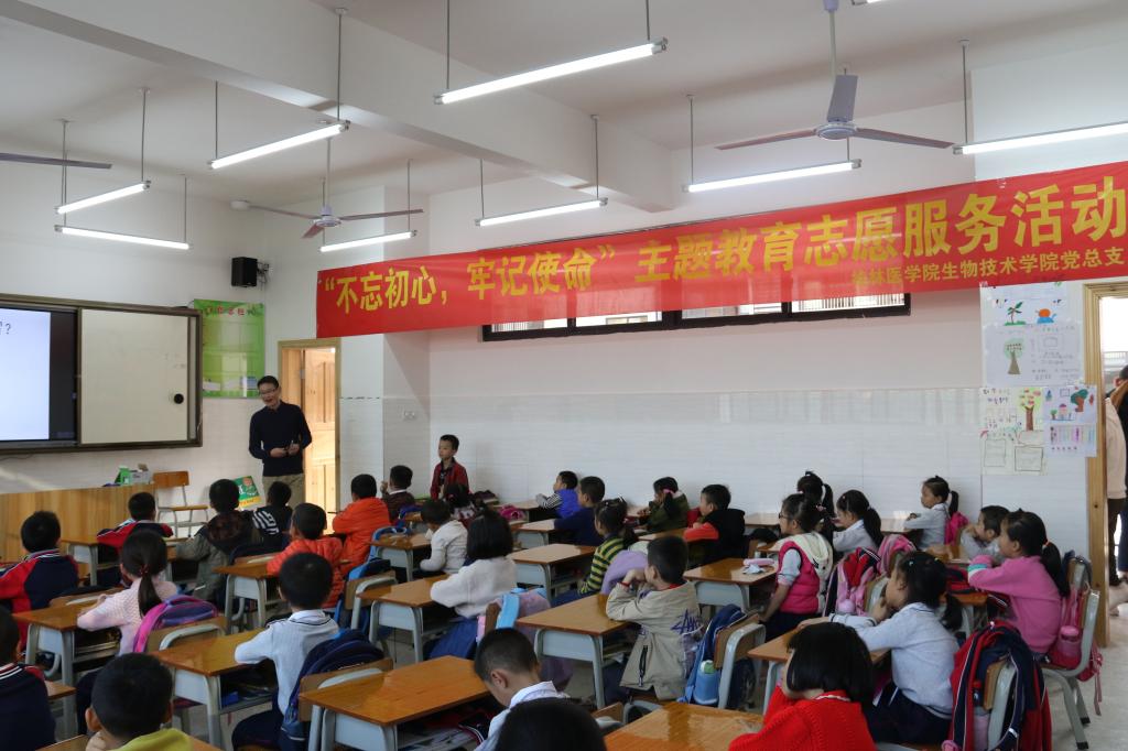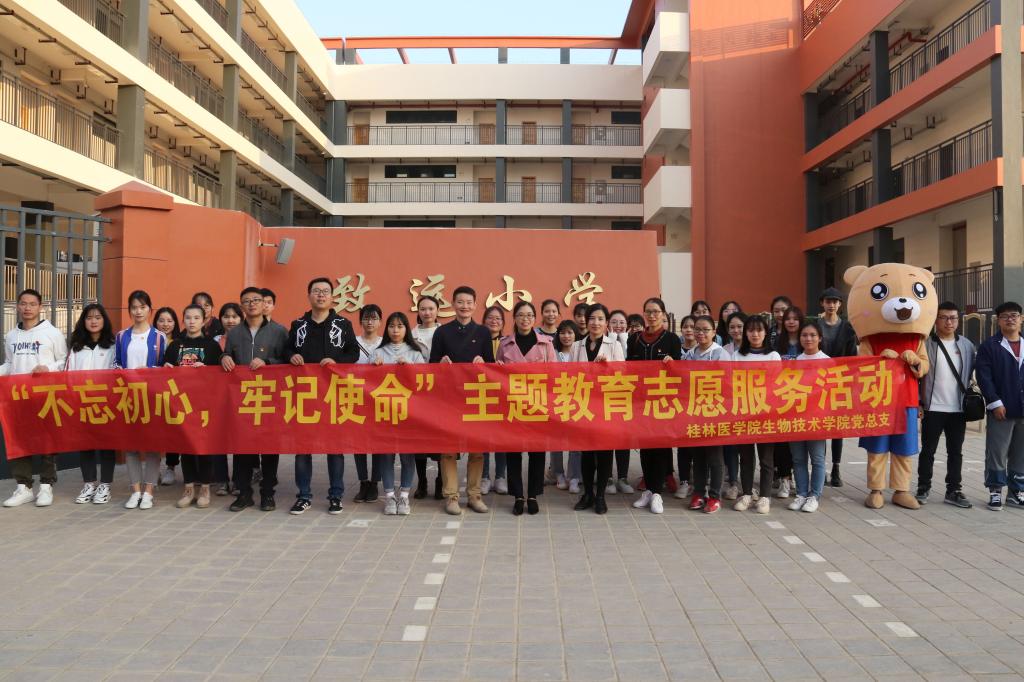 为贯彻落实“不忘初心、牢记使命”主题教育为人民群众办实事、办好事的具体要求,11月22日下午,生物技术学院党总支组织部分师生党员和入党积极分子深入桂林市临桂区致远小学开展“不忘初心、牢记使命”主题教育志愿服务活动。