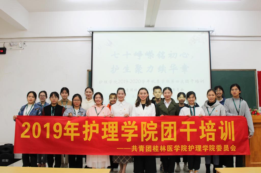 为引导团学干部把兴趣特长发展成个人优势,提高自身综合素养,11月20日-25日,护理学院2019年第三期团课在临桂校区北楼103教室开讲。本期培训邀请到第二届文艺标兵孙玲、护理学院圣洁艺术团指导老师孔德隆、校党委宣传部新闻中心亓茂竹进行授课,三位嘉宾分别从主持艺术、音乐素养、新媒体运营等方面,给团干们带来干货满满的分享。