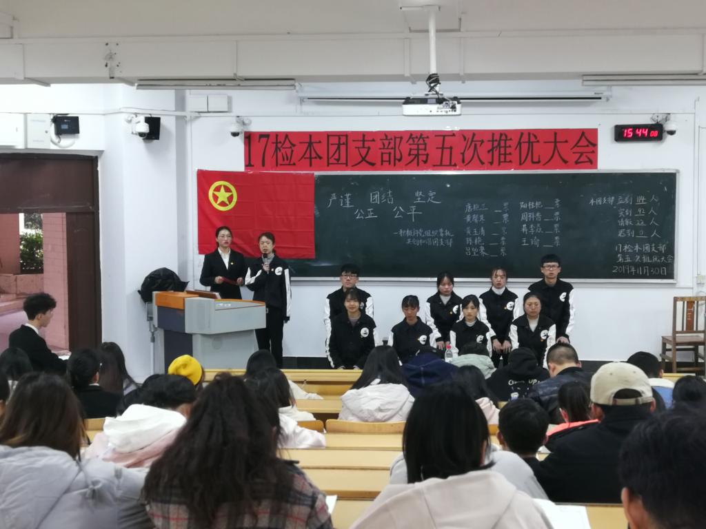 为加强我院党员队伍建设,充实党的新生力量,激发广大团员政治热情。11月30日下午,2017级医学检验技术本科班(以下简称“17检本”)于东城校区T1-1教室开展第五次推优大会。医学检验学院党总支委员、团委副书记王秀娟老师及17检本团支部全体团员参加本次推优大会。