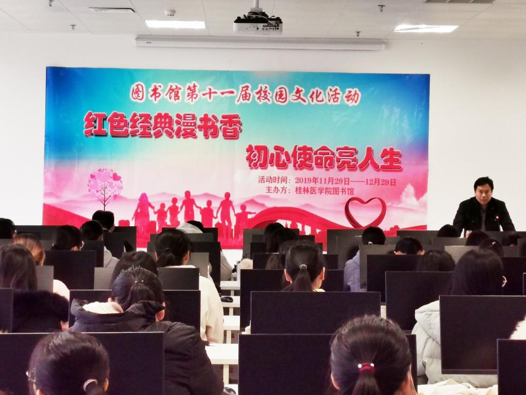 为扎实推进阅读推广工作,营造书香校园,结合“不忘初心 牢记使命”主题教育,图书馆开展主题为“红色经典漫书香 初心使命亮人生”校园文化活动。2019年11月29日,图书馆全体馆员、各社团嘉宾、学生代表参加了开幕式。
