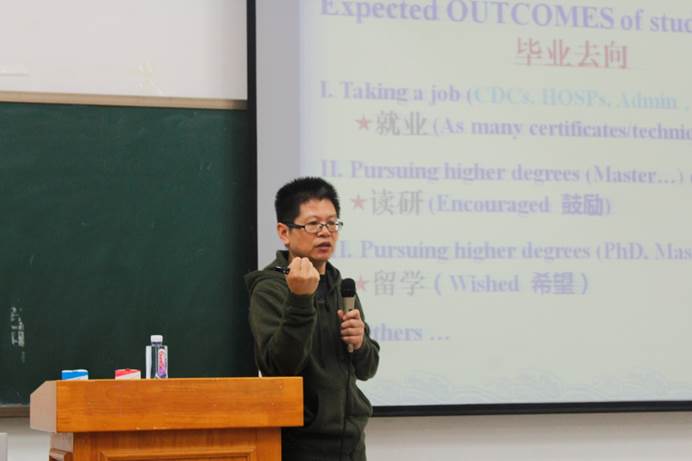 谭盛葵给新生讲授《大学生入党启蒙教育》,他围绕树立长期目标、加强自主学习、明确入党条件、青年学生入党基本程序四个方面帮助新生进一步了解党的基本知识,使同学们懂得入党条件,熟知入党程序,从而点燃新生入党热情,争取早日加入党组织。黄波给新生讲授《专业思想教育》,他从专业基本情况、专业就业前景、毕业生就业去向、积极参加课外学术活动等方面给同学们讲授预防和卫检专业情况,帮助新生明确专业定位,树立正确就业观念。莫丽琴给新生讲授《计划生育文件解读》,她详细的讲解了广西和beat365官网计划生育文件,使同学们了解了计划生育文件要求。并结合身边事例,告诫同学们要严格按照计划生育文件要求,做好婚姻状况和生育状况登记手续,确保按期完成学业,达到顺利毕业要求。庞伟毅给新生讲授《人才培养方案解读》,详细讲解培养方案课程设置、学分要求以及实践实习要求等,告诉同学们如何达到毕业要求,顺利实现毕业目标。其他辅导员从学生会、团委、社团工作,学生管理规定以及文明礼仪诚信教育等给同学们进行授课。我院开设全方位、多角度、多层次的新生入学教育课程,消除了新生初入大学校园的迷茫,引导同学们适应大学生活。