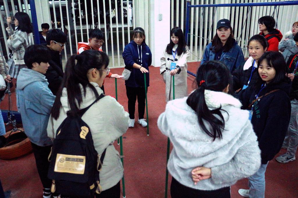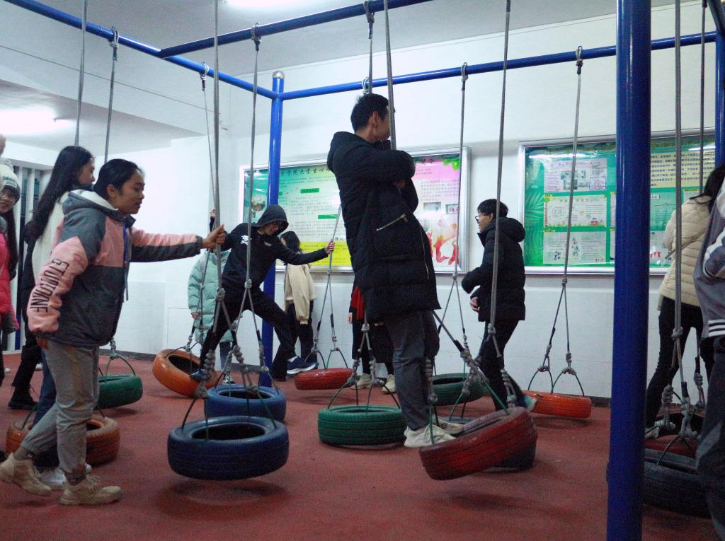 虽然寒风凛冽,但大家的兴致丝毫未减,在工作人员的组织和解说下认真参观基地。在场同学们组队开展了素拓活动,穿越电网、不倒森林、雷阵、空中接力、风火轮、袋鼠行动等活动把大家凝聚在了一起,欢声笑语不断,同学们在切身体验中学会了各类器材的使用说明。参加培训的心理委员纷纷表示将及时向班级同学进行宣传,在心理主题班会中把素拓活动的快乐传递到各班,传递给每一位同学。