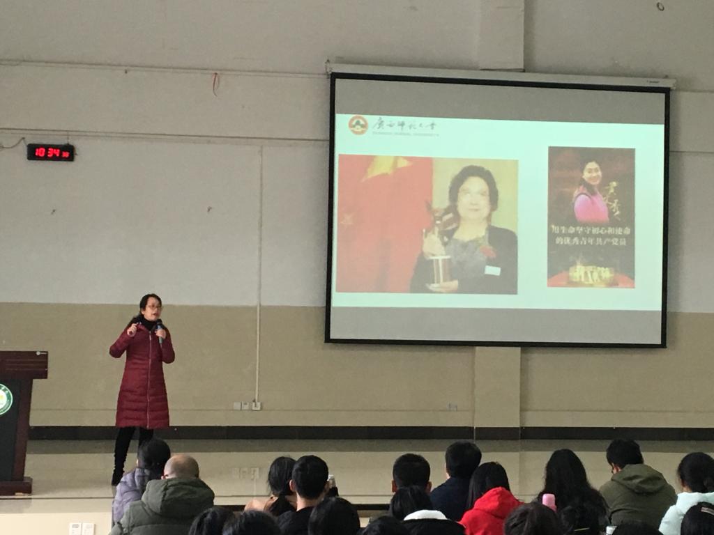 为深入学习贯彻习近平总书记在学校思想政治理论课教师座谈会上的重要讲话精神,高质量办好新时代高校思想政治理论课,根据《自治区教育厅关于开展全区高校优秀思想政治理论课示范课巡讲活动的通知》(桂教思政【2019】5号)要求, 12月4日上午,beat365官网邀请全国高校公共关系教学名师、2013年度广西高校思想政治理论课教师年度人物、广西优秀教师、广西师范大学马克思主义学院副院长、博士生导师韦冬雪教授在临桂校区教学南楼多功能报告厅进行思想政治理论课示范教学。学校相关职能部门负责人、马克思主义学院全体教师、专兼职辅导员以及2019级部分学生现到场聆听。