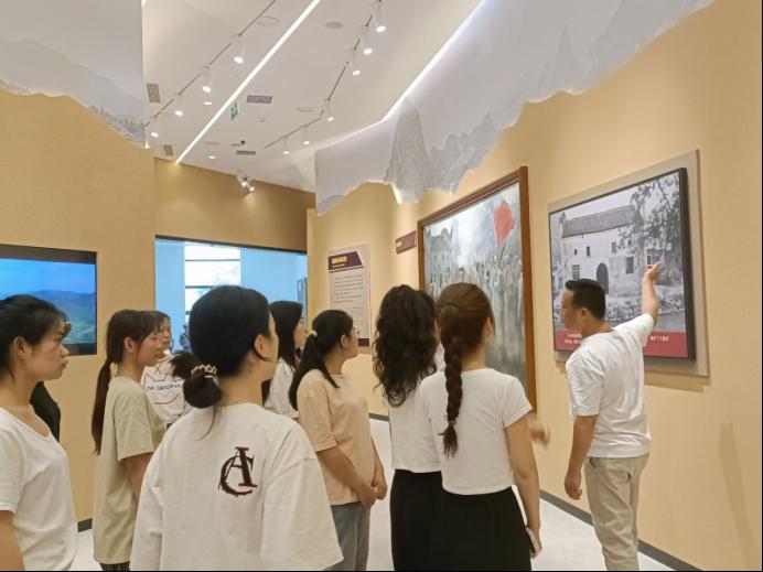 在酒海井、新圩阻击战史实陈列馆,学生第九党支部书记带领党员们,通过丰富的历史文物、翔实的文史资料、多样的表现方法,深入了解和深切感受了新圩阻击战历史过程和壮烈场景,以及红军烈士被投入井底、红军伤员守望酒海井等背后的壮烈悲歌。师生党员用脚步丈量历史的豪迈,见识腥风血雨的战斗,认识无数可歌可泣的革命英烈,他们边走边看、边听边学、边学边思、边思边议,聆听革命先辈的感人事迹,重温烽火岁月,接受革命传统教育。