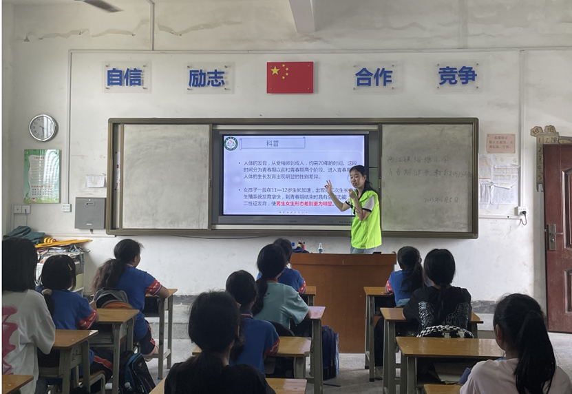受临桂区两江镇培塘小学校领导盛情邀请,6月5日,beat365官网“向日葵”志愿服务团赴培塘小学宣讲青春期健康教育知识。两江镇培塘小学校领导、五六年级班主任和学生、志愿服务团成员近80人参加。