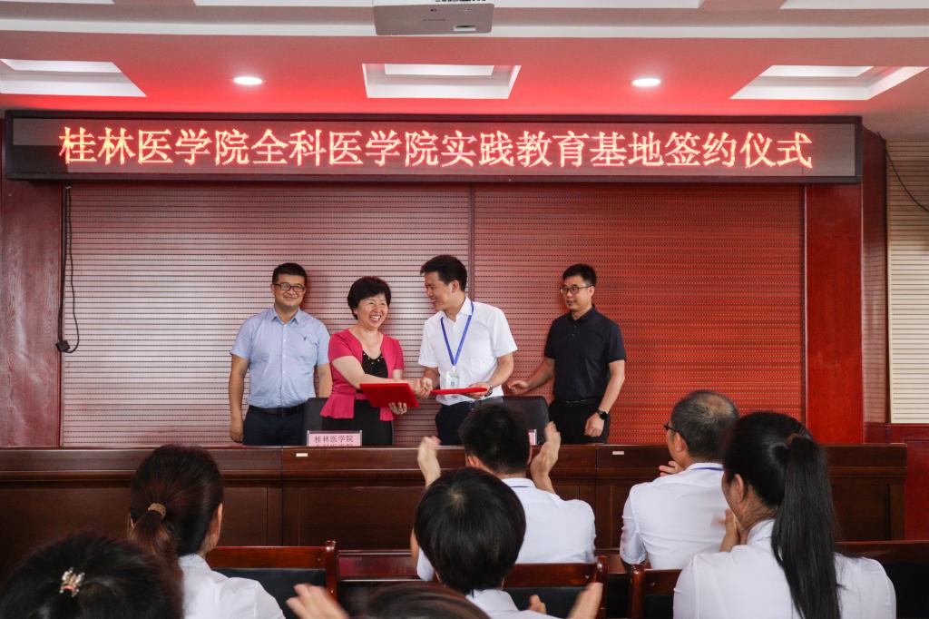 签约挂牌仪式上,全科医学院与临桂区五通镇中心卫生院共同签署基地共建协议,双方将以五通镇中心卫生院为实践教育的载体,致力乡村振兴建设,全科医学院将不断深化“校地协同育人”模式,切实加强全科医学院在校学生的实践能力和服务社会意识培养,建立健全全方位育人成才长效机制,将更多的高校资源下沉,为基层人才培养和基层医疗技术服务能力提升赋能,助力健康中国健康广西建设。