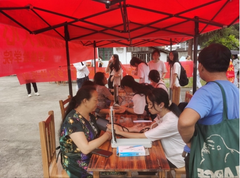 志愿服务队为村民进行血压测量,耐心询问老人们的健康情况,并给予针对性地指导和建议。同时,部分老师和志愿者走家串户发放食源性寄生虫传单200多份,关心村民们的生活条件和生命健康,讲解如何预防和治疗食源性寄生虫病,积极宣传有关食源性寄生虫的知识。