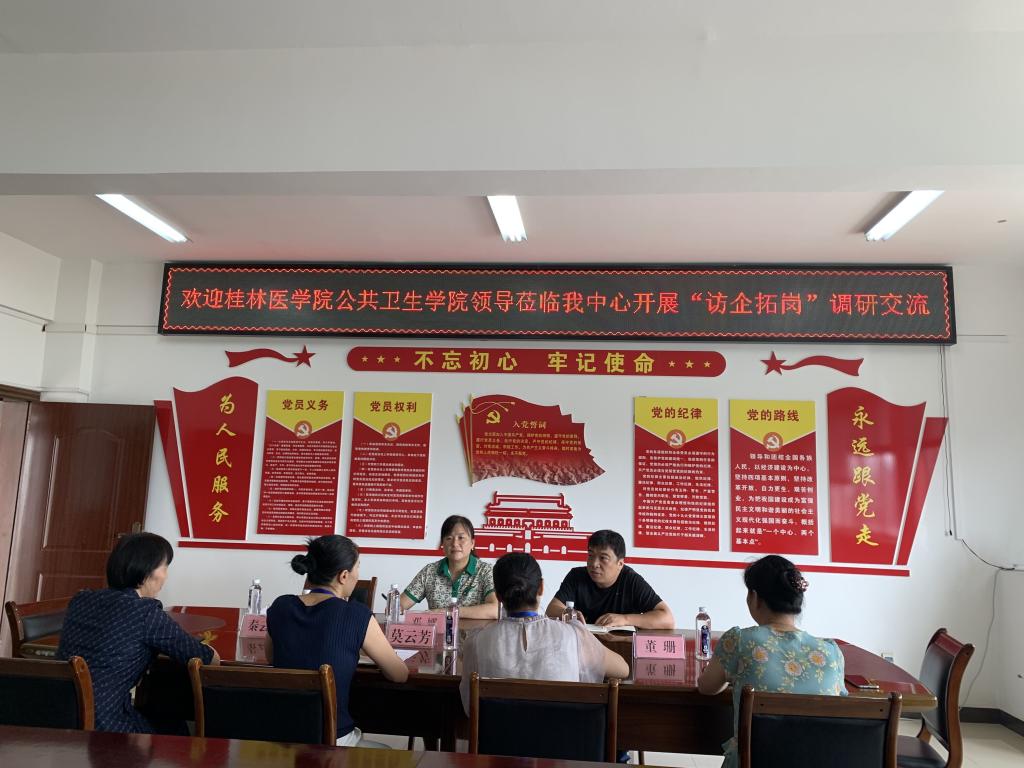 为进一步做好实习和就业工作,拓展学生实习就业渠道,促进毕业生高质量就业,7月21日,公共卫生学院党委书记邓娜一行3人到灵川县疾病预防控制中心开展访企拓岗促就业专项行动,同时对实习实训基地建设调研考察。
