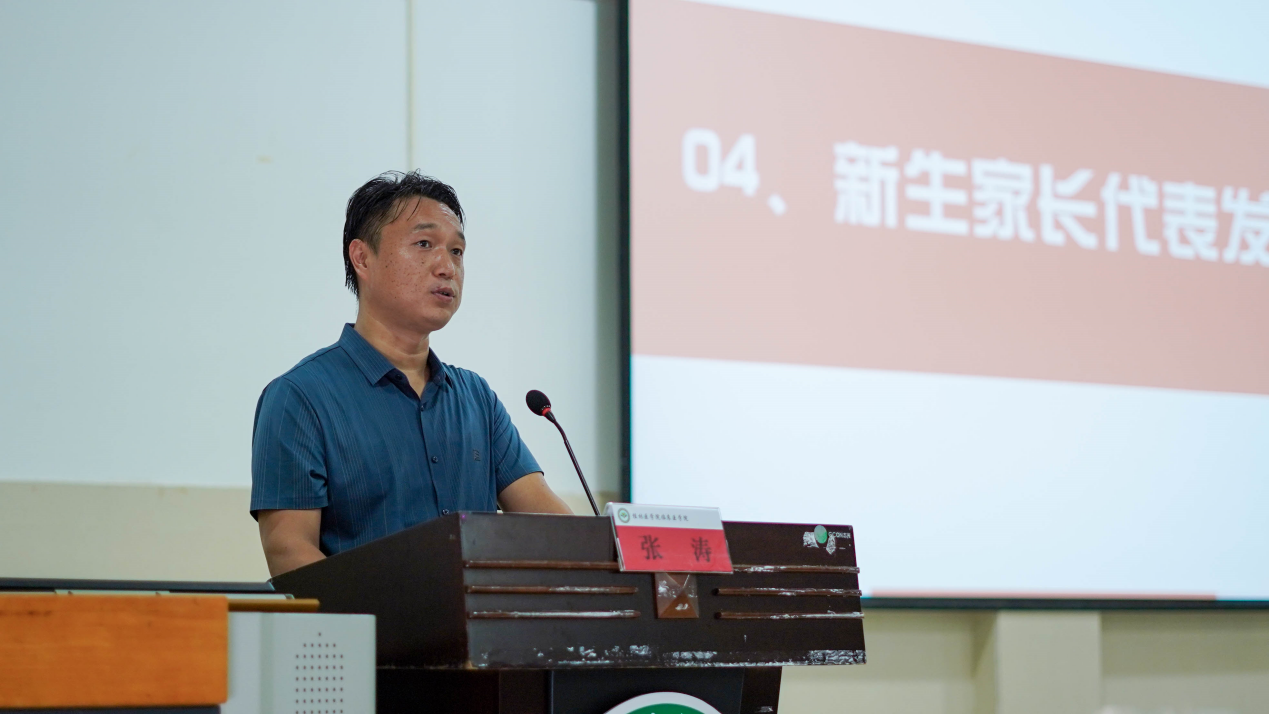 辅导员林俊江、潘燕兰先后发言,他们为同学们的医学生涯提出展望,帮助新生们更好地适应大学生活。随后,新生家长代表张涛发言,他表达了对学校和老师们辛勤付出的肯定与感激,并希望孩子们能在大学期间不负老师与家长的期盼,更不负学校的期望,努力成为一名合格的医学生。