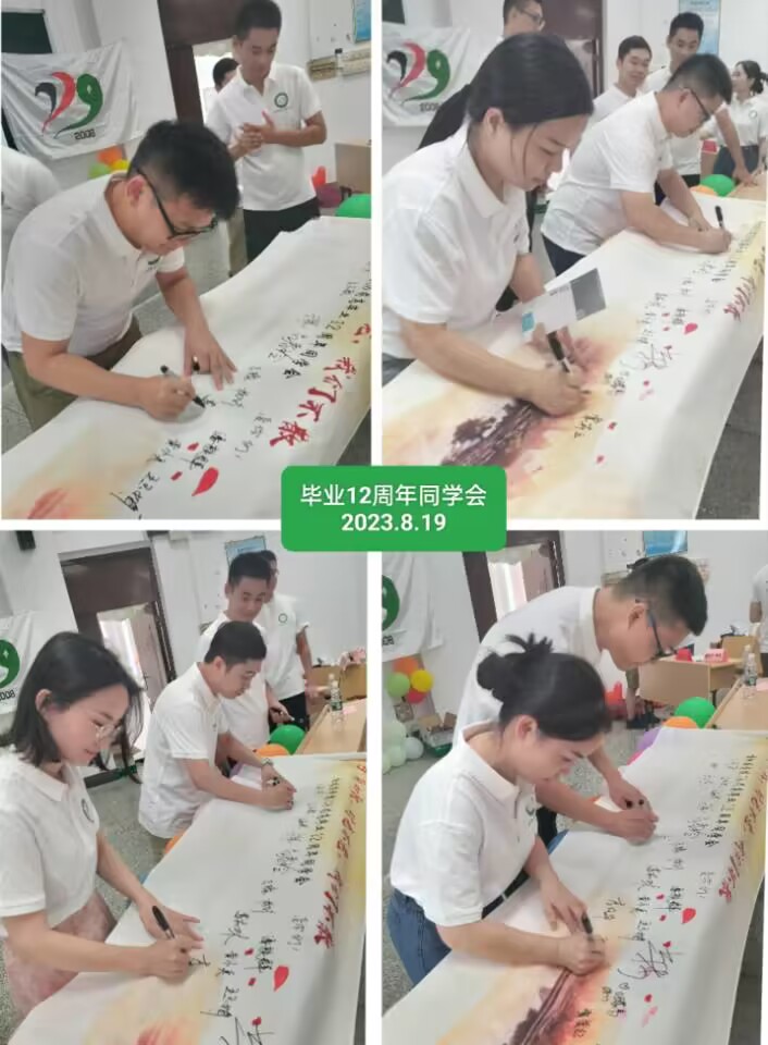 活动当天,校友们首先在签到墙签到,每一个名字都代表着一个独特的故事和记忆,见证了共同成长的岁月。师生见面会上,潘轶群老师作为嘉宾发言,她分享了自己的教育经验和对校友们的祝福。潘老师的话语让大家感受到了母校的关怀和期望。接着,播放了班级视频,回顾了全班一起度过的美好时光。视频中的每一个笑脸,每一次欢声笑语,都勾起了大家共同的回忆。同学们热情洋溢的发言也充分表达了彼此之间的真诚友谊和对母校的感激之情。