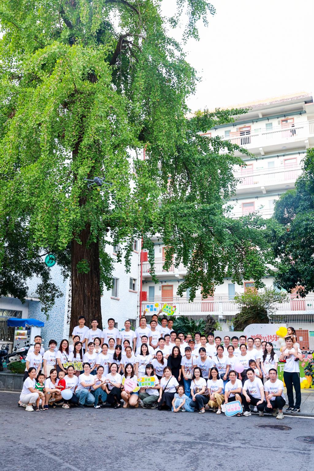 在乐群校区大银杏树旁合影
