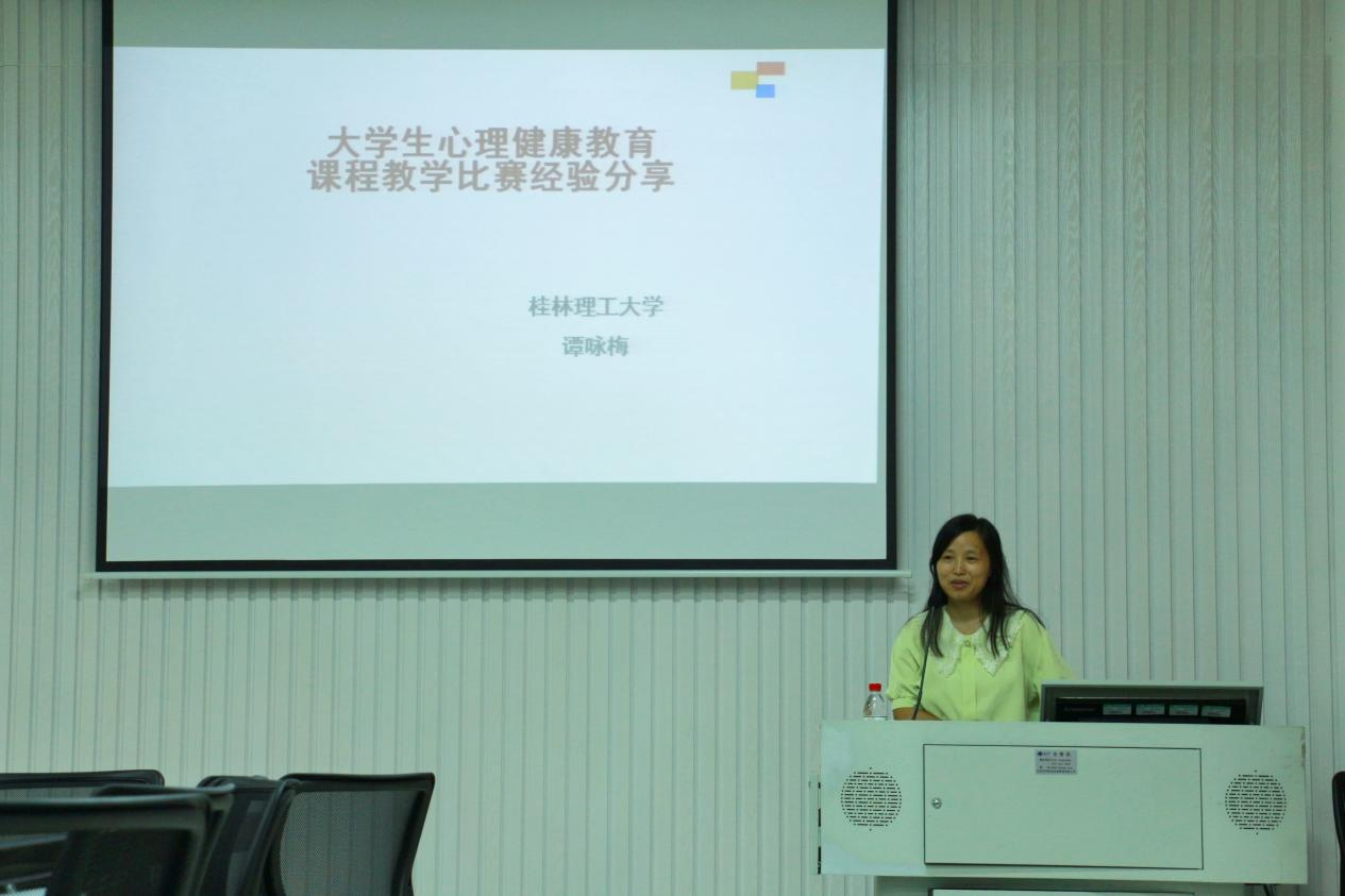 本次活动邀请了2022年广西高校大学生心理健康教育课教师教学能力大赛一等奖获得者桂林理工大学谭咏梅老师作经验分享。她结合自己参加广西高校大学生心理健康教育课教师教学能力大赛的经历,详细解读广西高校大学生心理健康教育课教师教学能力大赛要求,结合实例阐述了教学设计如何“尊重教材,拓展思路;逻辑清晰、层层递进;教学有方,但无定法;推陈出新,特色鲜明”,分享自己参赛心路历程和现场答辩经验,希望大家紧扣大学生心理健康教育课程的“知识与技能,方法与过程,情感、态度与价值观,课程思政”等要求,不断提升自己的教学能力和水平,不断推动大学生心理健康教育课教学工作上新台阶,为学生不断提升心理健康素养水平做出自己应有的贡献。