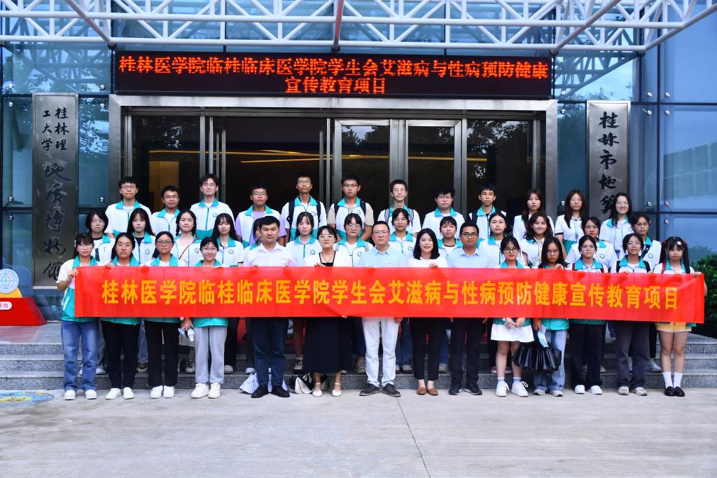 为提高大学生知艾防艾意识,遏制艾滋病在青年群体中的传播和流行,9月15日下午,临桂临床医学院赴桂林理工大学开展防艾知识宣讲及参观交流活动。桂林理工大学团委、环境科学与工程学院等部门相关工作人员以及该校红十字会全体成员、学生代表共计150人,医院、学工办的老师以及医学生志愿者共计40人参与此次活动。