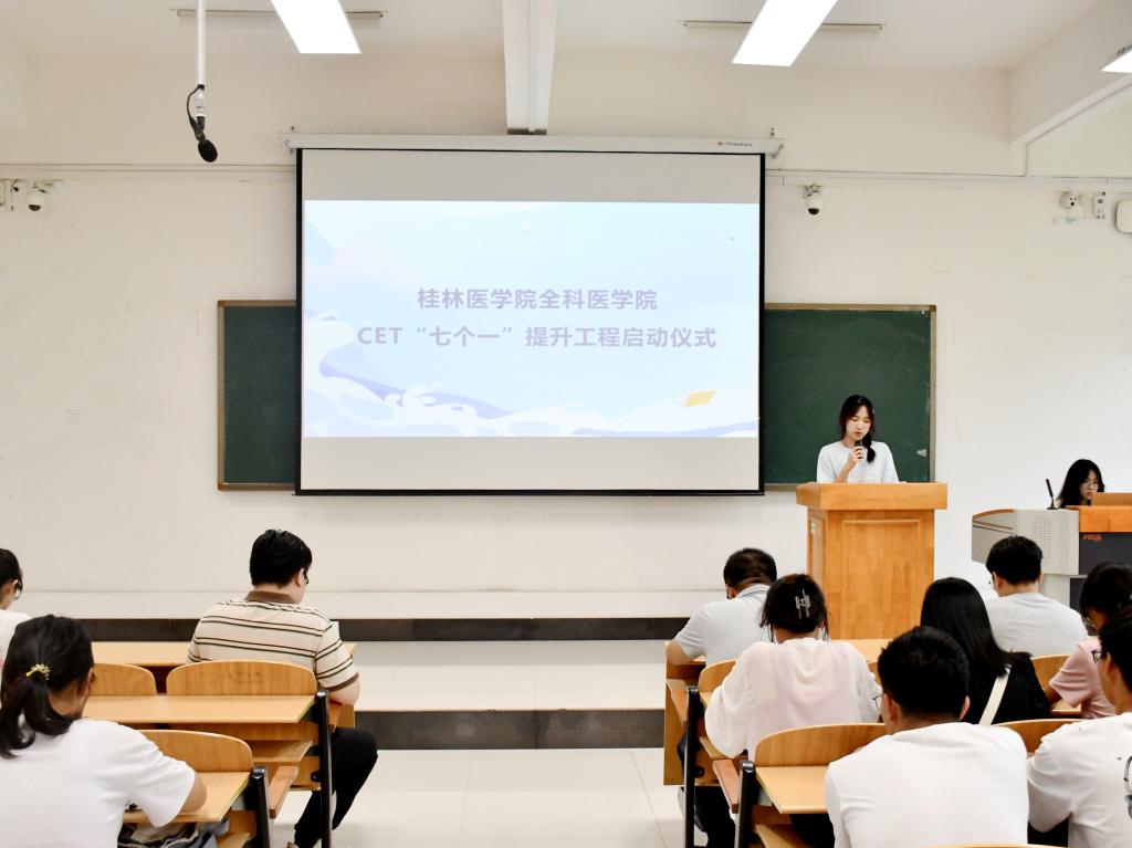 为进一步营造共学互助的良好学习氛围,加强学院学风建设,提升学院大学生英语整体水平。9月24日下午,全科医学院在临桂校区教学北楼N103举行CET“七个一”提升工程启动仪式。全科医学院党委副书记潘涛、全体专职辅导员、各年级学生代表参加活动。