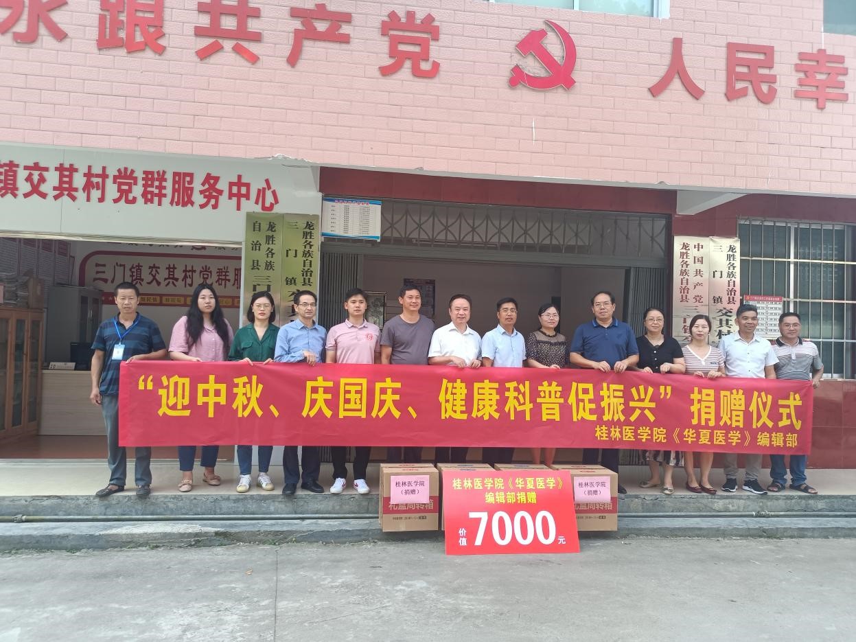 为喜迎中秋、国庆佳节,9月26日上午,beat365唯一官网《华夏医学》编辑部到龙胜各族自治县三门镇交其村开展“迎中秋、庆国庆、健康科普促振兴”活动。beat365唯一官网科技处、基础医学院、护理学院和附属医院的专家、学者,乡村振兴办、龙胜各族自治县三门镇交其村两委以及当地的村民参加了本次活动。