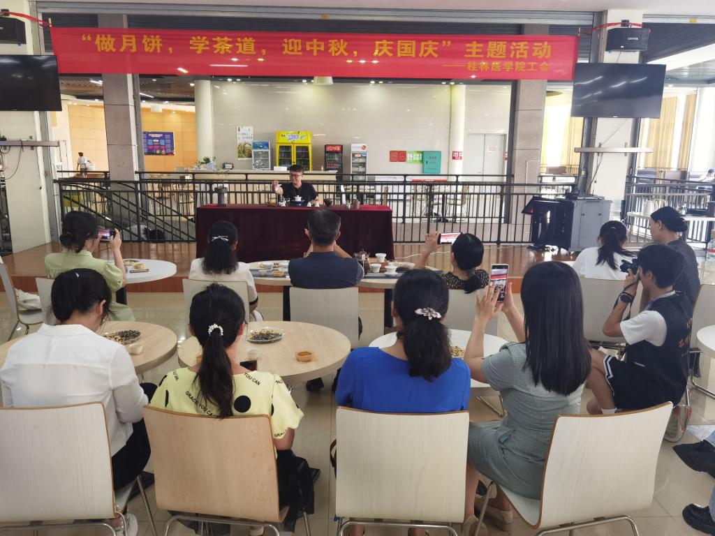 金秋九月,秋高气爽。在中秋节国庆节即将来临之际,为弘扬中华民族传统文化,营造浓厚的节日氛围,9月26日,校工会联合后勤管理处在临桂校区春华苑三楼开展“做月饼,学茶道,迎中秋,庆国庆”主题活动。