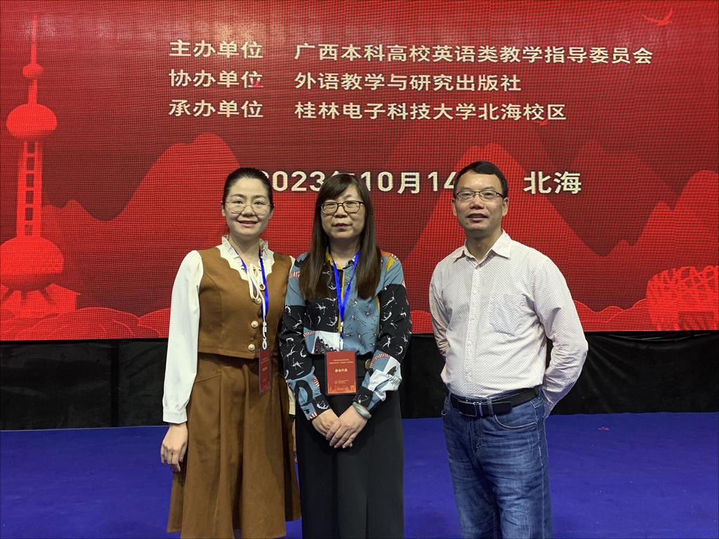 为全面贯彻党的二十大精神,深入推进《习近平谈治国理政》多语种版本进高校进教材进课堂(以下简称“三进”)工作,深化外语教学改革和课程思政建设,由广西本科高校英语类教学指导委员会主办的“理解当代中国”外语教学工作培训会于10月14日在广西北海举行。beat365官网大学外语部主任梁雪清及陆耀雁、廖雯琦老师参加培训会。