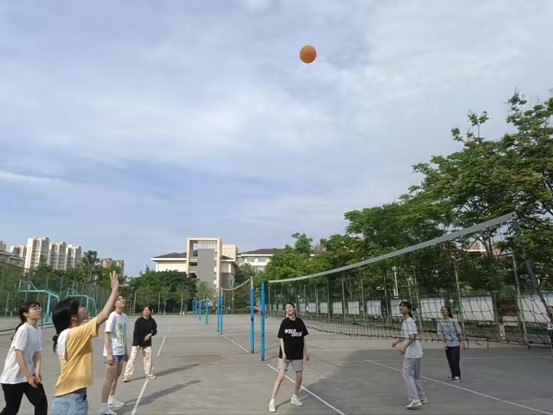 篮球赛场上,同学们手持篮球,目盯篮筐,凝神聚气,奋力投篮,同学们相互喝彩、鼓励,四周拉拉队呐喊助威,跃跃欲试。气排球赛场上,高潮迭起,发球、垫球、传球、扣球、拦网、救球……同学们的激情、活力和精湛的球技不断引来赛场球迷的喝彩。现场气氛热烈,欢声雷动。大家秉着“友谊第一,比赛第二”的精神风貌,每个人都展示了较强的实力,体现了较高的运动水平。
