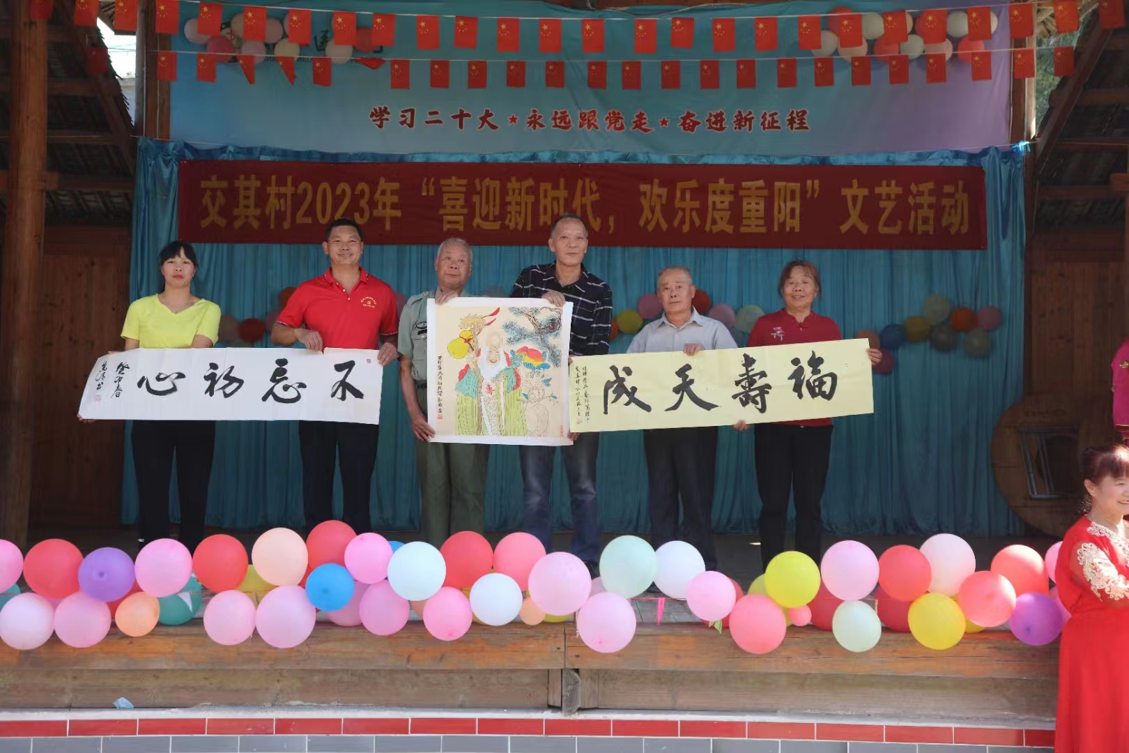 为弘扬中华民族尊老爱老的传统美德,进一步倡导敬老、爱来、助老的文明风尚,10月23日,学校在定点帮扶的交其村举办“喜迎新时代,欢乐度重阳”文艺汇演活动。参加本次文艺汇演单位有beat365唯一官网、桂林老兵艺术团、桂林演艺中心艺术团、鹦鹉社区快乐歌舞队,交其村老年协会、各村民小组等。