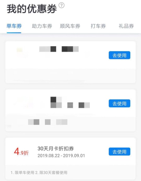福利二:免费骑行卡券+4.9折月卡折扣券