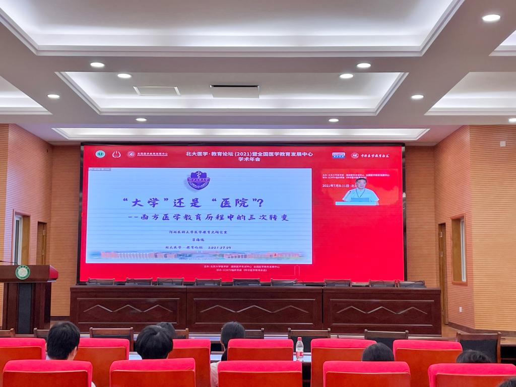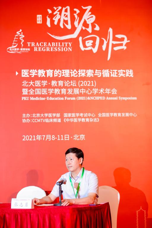 2021年7月9日,由北京大学医学部、国家医学考试中心、全国医学教育发展中心联合主办,CCMTV临床频道、《中华医学教育杂志》协办的北大医学·教育论坛(2021)暨全国医学教育发展中心学术年会在北京盛大开幕。中国科学院院士韩启德,教育部医学教育专家委员会主任委员、中国高等教育学会副会长林蕙青,中国工程院院士、北京大学常务副校长、医学部主任乔杰,国家医学考试中心主任王县成,北京大学医学部副主任、全国医学教育发展中心常务副主任王维民等参加开幕式。beat365官网党委书记、院长张志勇应邀作为嘉宾主持人参加了本次大会。