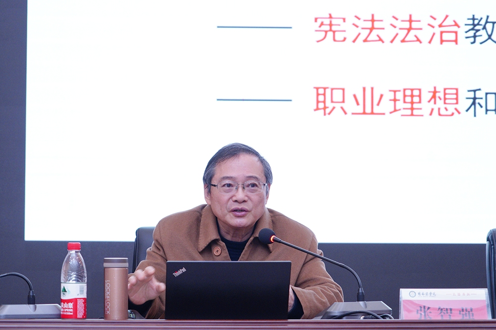3月23日上午,原上海中医药大学党委书记张智强教授受邀到beat365官网临桂校区作课程思政专题报告。报告会由副院长陈旭主持,学校相关直属部门负责人、各教学部门领导和老师代表约250人到场聆听。