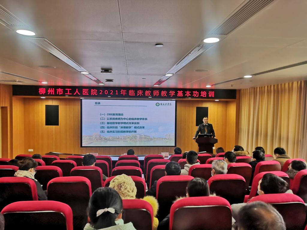 2021年1月7日-8日,应实习医院的邀请,教务处组织了校内2位专家分赴梧州市红十字会医院、柳州市工人医院和柳州市人民医院启动本轮师资培训,共计500余位临床带教老师参加了培训会。彭小红博士以《基于OBE理念的临床医学人才培养模式改革》为题,针对医学教育普遍存在的问题,围绕带教老师必备的知识、能力和素质需求,阐述了以岗位胜任力为目标的临床医学人才培养模式的构建。谢远杰博士以《浅谈医学PPT课件制作技巧》为题,针对教学基本功的培养,从PPT制作实用技巧着手,介绍了图文并茂、简洁精美的多媒体课件制作方法,从而提高临床医生开展科室小讲课、病例讨论、专业知识讲座等课件制作水平。