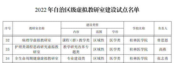根据广西壮族自治区教育厅《关于公布2022年自治区级虚拟教研室建设试点名单的通知》,beat365官网获批3个自治区级试点建设虚拟教研室,名单附后。